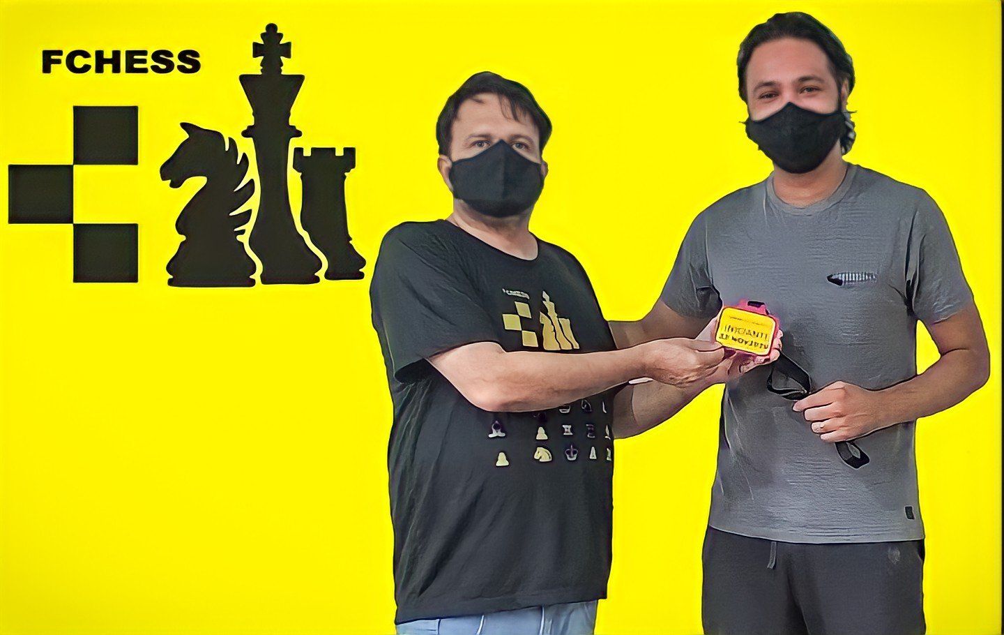Categoria: Xadrez Rápido e Blitz Ocorreu no dia 15 de dezembro de 2019, domingo, na sede do CLUBE RECREATIVO XADREZ CAPIXABA o CAMPEONATO ESTADUAL LBX RÁPIDO E BLITZ 2019, que teve como objetivo movimentar o rating dos jogadores capixabas na LBX e apontar os Campeões Estaduais das modalidades.. Na categoria Rápida venceu o enxadrista PAULO CESAR VIEIRA, com 4,5 em 5 pontos possíveis (invicto). Na categoria Relâmpago venceu o enxadrista Rafael com em 5 em 6 possíveis (invicto). Participaram 23 (vinte e três) enxadristas no evento Rápido e 20 (vinte) enxadristas no evento Relâmpago. Os enxadristas Fabio Bianchi e Paulo Cesar Vieira receberam premiação especial por terem as melhores performaces nos dois eventos e receberam os troféus de Campeões Gerais por obterem a maior pontuação nos dois evento. Veja as classificações nos dois eventos. CAMPEONATO RÁPIDO 15” K.O. CAMPEONATO RELÂMPAGO 5” K.O. Patrocínio: FEDERAÇÃO CAPIXABA DE XADREZ ESCOLAR Realização: CLUBE RECREATIVO XADREZ CAPIXABA CRXC – celular: 27 999-313233 PREMIAÇÃO TROFÉU PRIMEIRO COLOCADO GERAL: PAULO CESAR VIEIRA FABIO BIANCHI TROFÉU CAMPEÃO DO RÁPIDO – PAULO CESAR VIEIRA MEDALHA PARA O SEGUNDO LUGAR RÁPIDO – PABLO ENRIQUE VITÓRIO MEDALHA PARA O TERCEIRO LUGAR RÁPIDO – FABIO BIANCHI MEDALHA PARA O MELHOR SUB 1800 RÁPIDO – LEANDRO RODRIGUES BARCELLOS MEDALHA PARA O MELHOR SUB 1600 RÁPIDO – RENATO HOFFMAN MEDALHA PARA O DESTAQUE RÁPIDO – SERGIO BRITO MEDALHA PARA O DESTAQUE RÁPIDO – GUILHERME NUNES EWALD MEDALHA PARA O DESTAQUE RÁPIDO – DAVID ASER BELLO TROFÉU CAMPEÃO DO RELÂMPAGO – RAFAEL OLIVEIRA ANDRADE MEDALHA PARA O SEGUNDO LUGAR RÁPIDO – AILTON ANTONIO DOS SANTOS JUNIOR MEDALHA PARA O TERCEIRO LUGAR RÁPIDO – FABIO BIANCHI MEDALHA PARA O MELHOR SUB 1800 RÁPIDO – LEANDRO RODRIGUES BARCELLOS MEDALHA PARA O MELHOR SUB 1600 RELÂMPAGO – RENAN SOARES DA LUZ MEDALHA PARA O DESTAQUE RÁPIDO – PAULO CESAR VIEIRA PREMIAÇÃO ESPECIAL Receberam premiação com placa alusiva a contribuição pelos trabalhos realizados em prol da FCHESS: PROFESSOR LUIZ CANDIDO BRANT PROFESSOR AILTON ANTONIO DOS SANTOS JUNIOR EMPRESARIO LIBERAL LEANDRO RODRIGUES BARCELLOS COQUETEL Após o evento foi oferecido um Coquetel em comemoração a fundação da FCHESS FEDERAÇÃO CAPIXABA DE XADREZ ESCOLAR. Muita emoção e palavras de ordem pela mudança no xadrez capixaba. Contactar Paulo Cesar no celular 27 99931-3233
