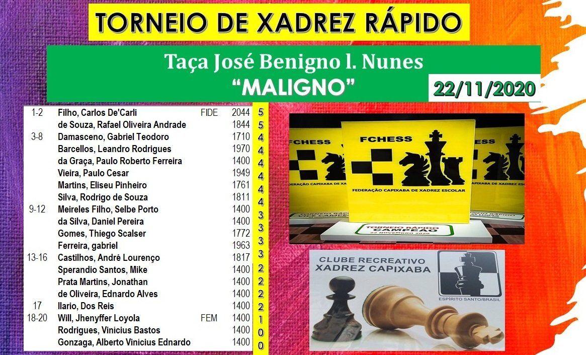 TORNEIO DE XADREZ RÁPIDO - TAÇA JOSÉ BENIGNO L. NUNES - 22/11/2020